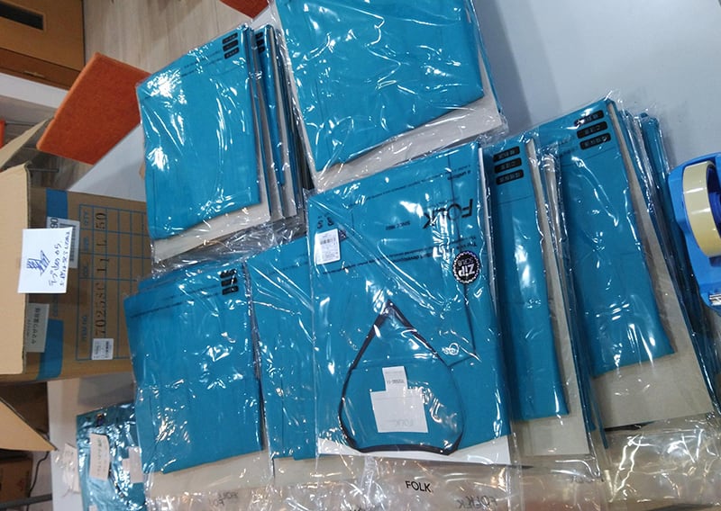 (作業着の検針・検品・畳み・袋入れ)